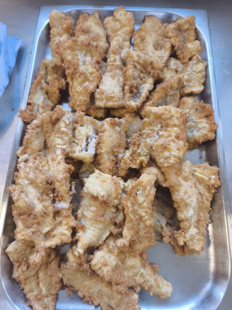 - En platos de pescado rebozado